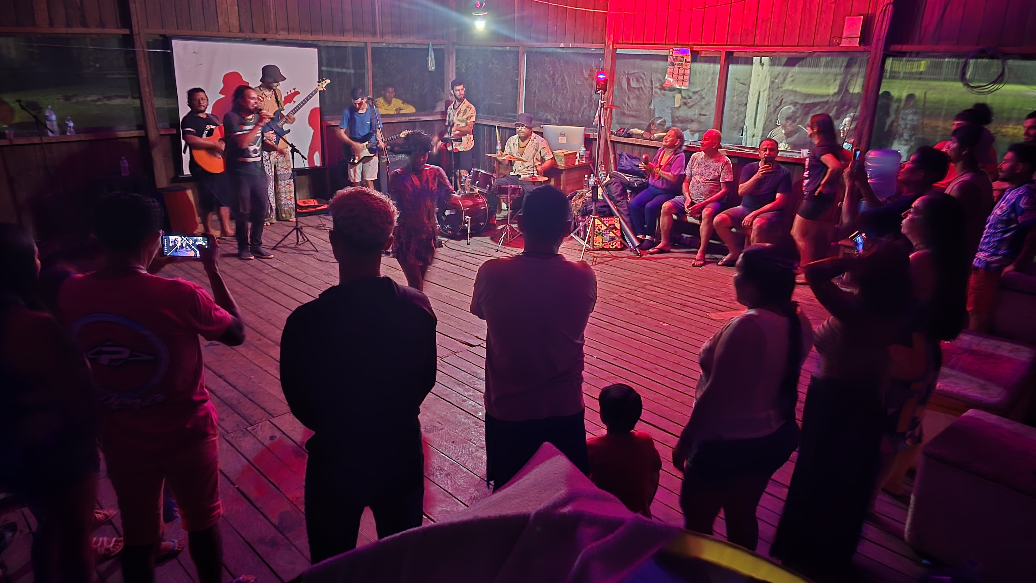 Após a exibição do filme e a roda de conversa, foi distribuído um lanche preparado pelos estudantes de nutrição do IESPES. O encerramento da noite foi marcado pela apresentação do grupo musical Caldo de Piranha, banda de brega popular na região, que animou o público presente com músicas que expressam o cotidiano, os sentimentos e a identidade cultural amazônica.